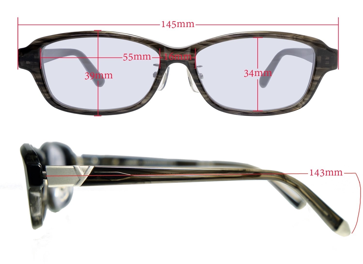 テンプル実寸(耳にかかる部分):143mm